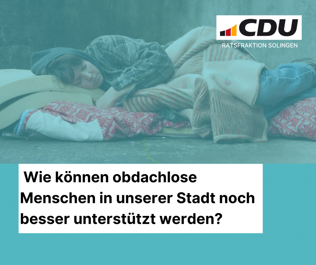 Anfrage zur Sitzung des ASGGT am 17.02.2026 Wie können obdachlose Menschen in unserer Stadt noch besser unterstützt werden? Die CDU-Fraktion im Rat der Stadt Solingen