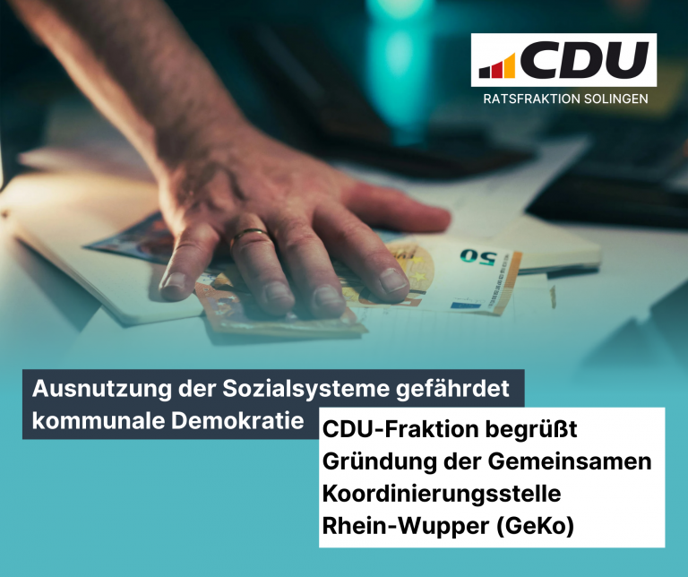 Ausnutzung der Sozialsysteme gefährdet kommunale Demokratie – CDU-Fraktion begrüßt Gründung der Gemeinsamen Koordinierungsstelle Rhein-Wupper