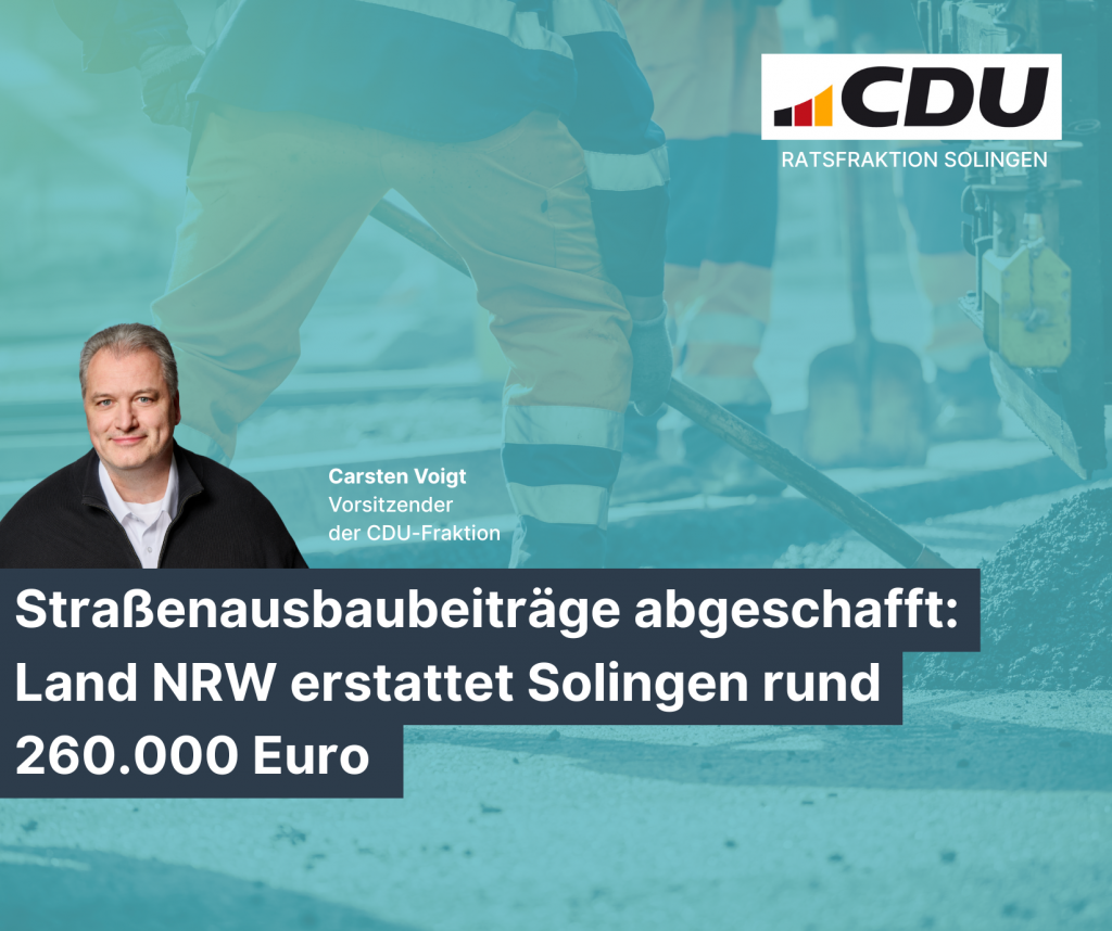 Straßenausbaubeiträge abgeschafft: Land NRW erstattet Solingen rund 260.000 Euro – CDU-Fraktionschef Carsten Voigt begrüßt Entlastung der Bürger