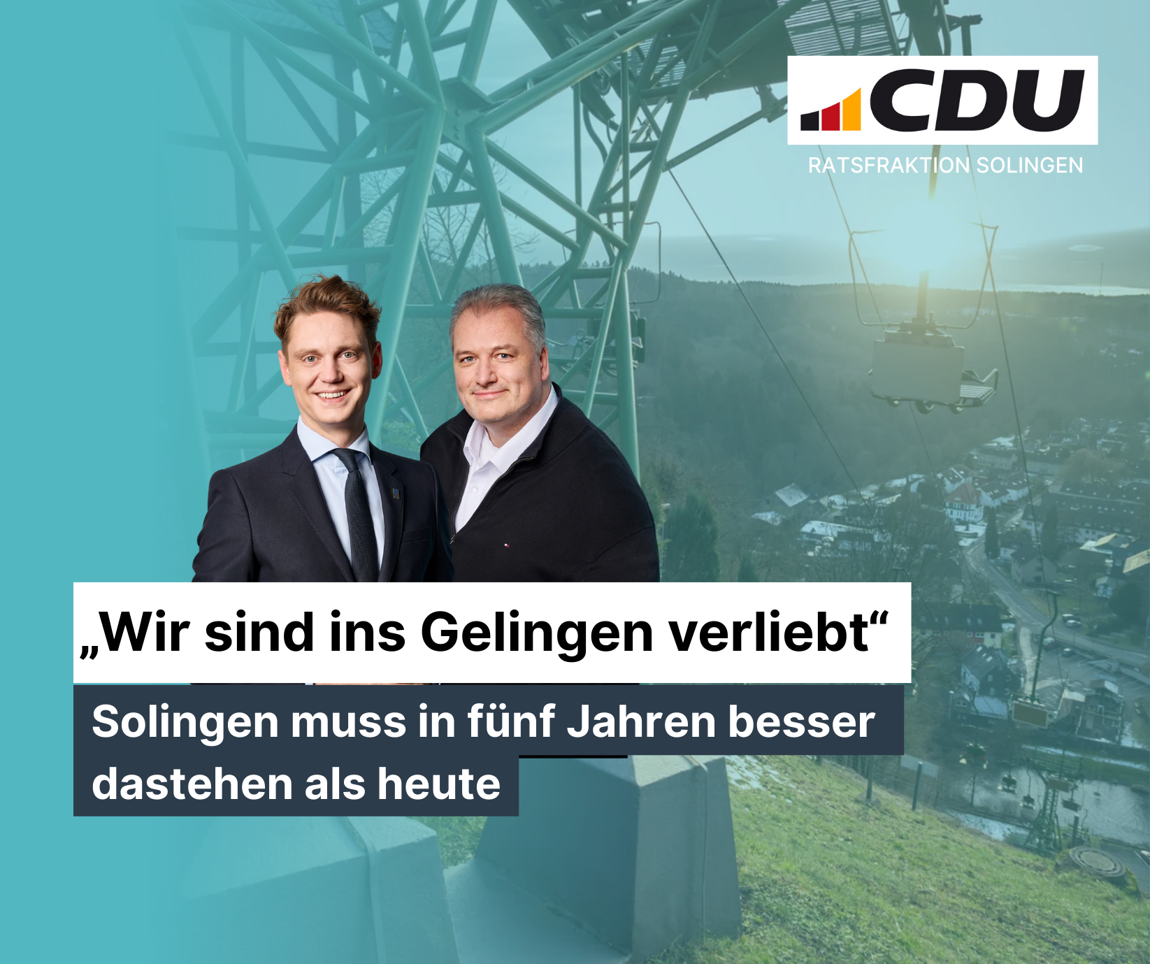 „Bei sei­nem Ein­zug ins Rat­haus ist der neue Ober­bür­ger­meis­ter lei­der auf kei­nen ver­steck­ten Gold­schatz gesto­ßen. Das heißt kon­kret: Die Klin­gen­stadt bleibt klamm. Aber auch hier hat Dani­el Flemm ver­stan­den. Er stellt unse­re Wirt­schafts­för­de­rung neu auf. Und die Poli­tik unter­stützt ihn dabei. Wir sind erleich­tert, dass die SPD nach der Wahl auf einen wirt­schafts­freund­li­che­ren Kurs umge­schwenkt ist. Das erfor­der­te Mut und hat unse­ren Respekt. Wenn es um die Belan­ge unse­rer Wirt­schaft und vor allem um mehr gute, siche­re und zukunfts­fä­hi­ge Arbeits­plät­ze geht, steht die CDU immer bereit. Gemein­sam mit unse­rem Ober­bür­ger­meis­ter ste­hen die demo­kra­ti­schen Kräf­te in unse­rer Stadt in einer Ver­ant­wor­tungs­ge­mein­schaft. Wir wol­len, dass es unse­rer Hei­mat­stadt in fünf Jah­ren spür­bar bes­ser geht. Von einem Still­stand oder gar Nie­der­gang pro­fi­tie­ren nur die Popu­lis­ten. Sie sind ins Schei­tern ver­liebt. Wir ins Gelin­gen“, sagt der CDU-Fraktionschef.