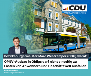 Bezirksbürgermeister Marc Westkämper (CDU) warnt: ÖPNV-Ausbau in Ohligs darf nicht einseitig zu Lasten von Anwohnern und Geschäftswelt ausfallen – Wegfall von Parkplätzen allein ist noch keine gute Politik